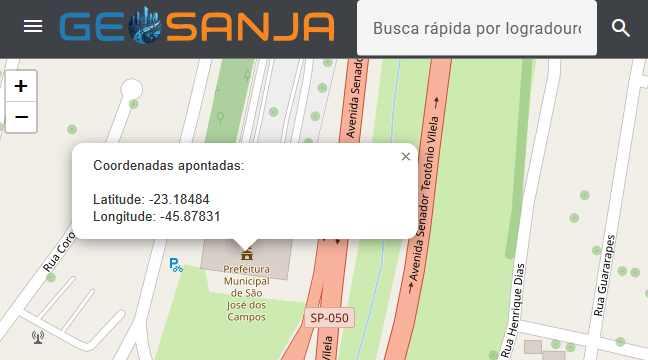 Exibir coordenadas do local apontado no GeosanjaInformações por apontamento da camada Unidades Básicas de Saúde (UBS)
